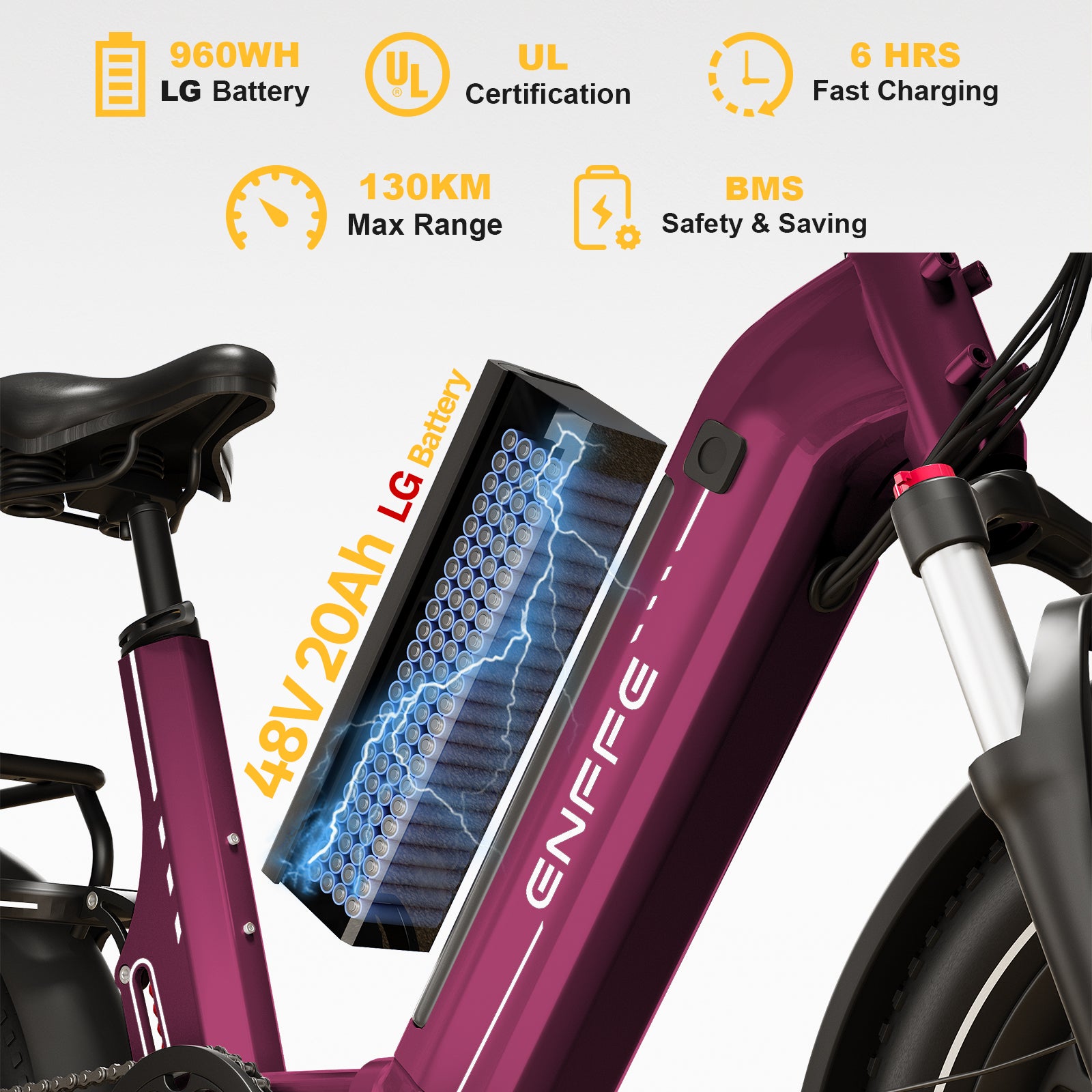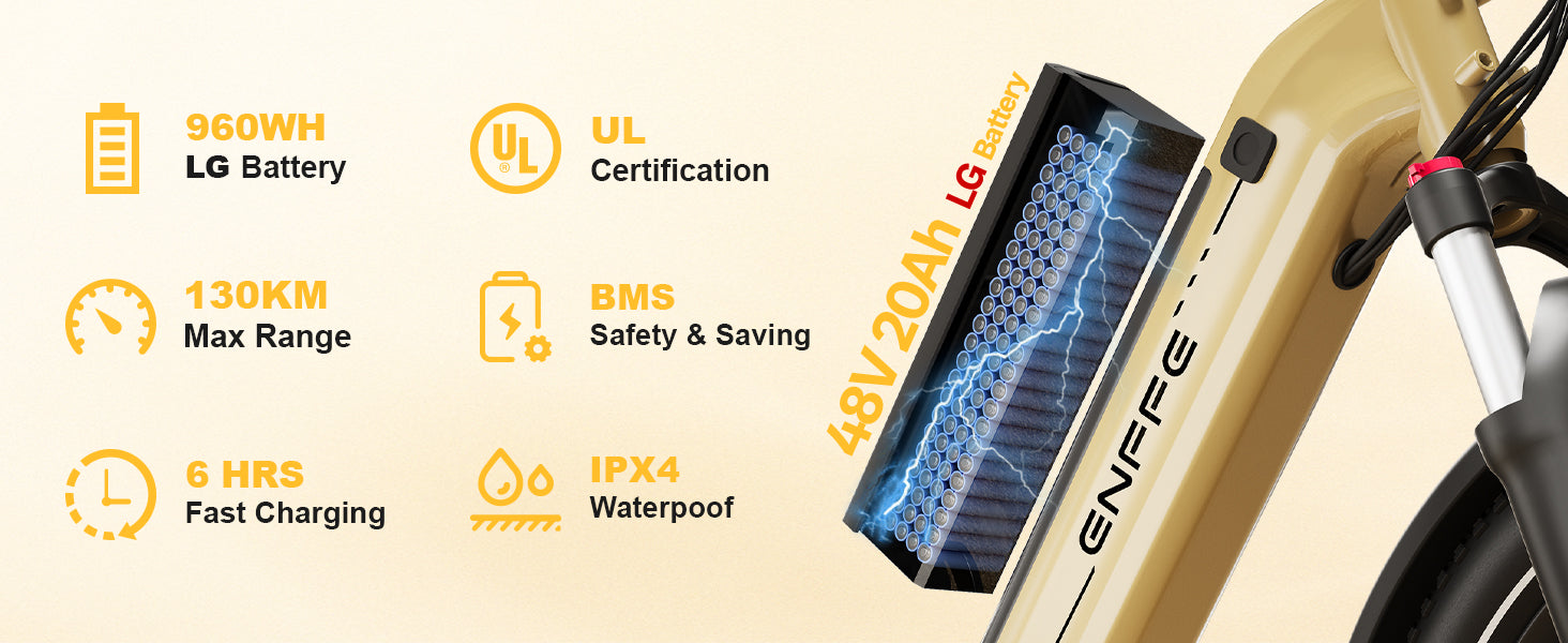 All ENFFE eBikes come with a 2-year manufacturer warranty for the original owner. The warranty covers majorcomponents such as the frame, battery, motor, controller, and display, protecting you against manufacturing defects.
