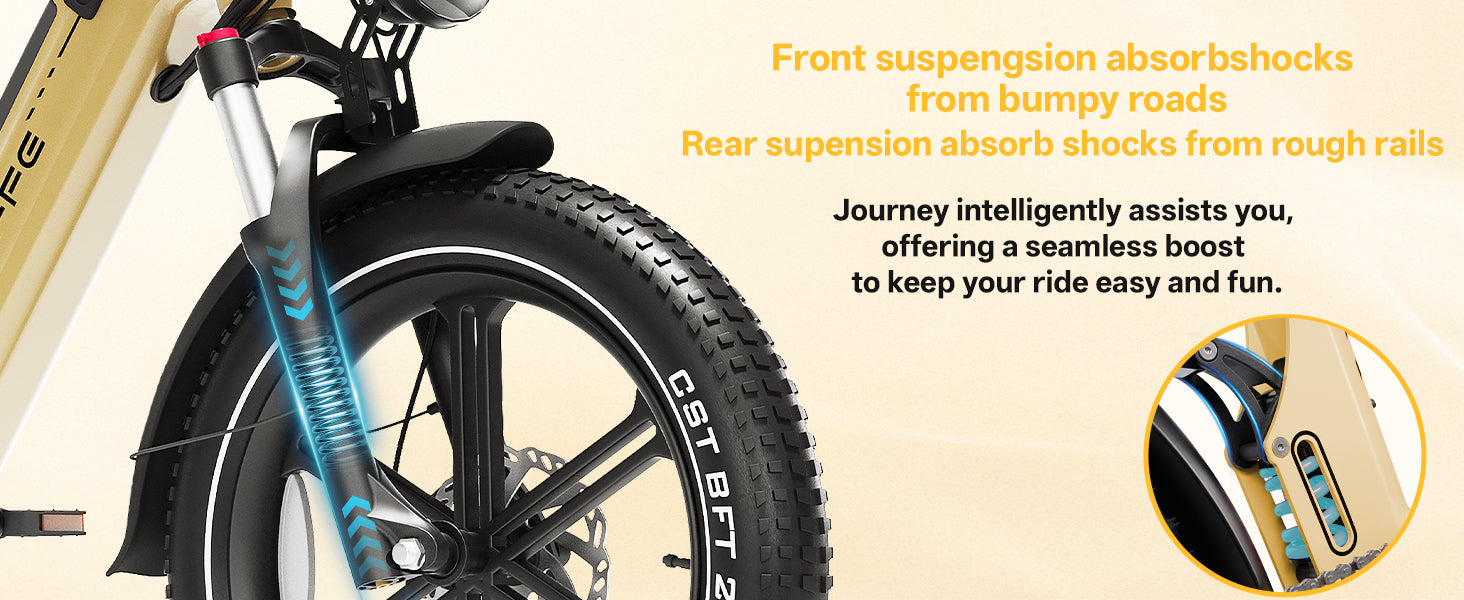 EAEF1 Pro Electric Bike, 20Ah LG Super Battery Full Suspension Ebike, 750W Power Hydraulics Brake Ebike, Up to 28MPH and 80 Miles, 7-Speed 20" Fat Tire All Terrain Electric Bike