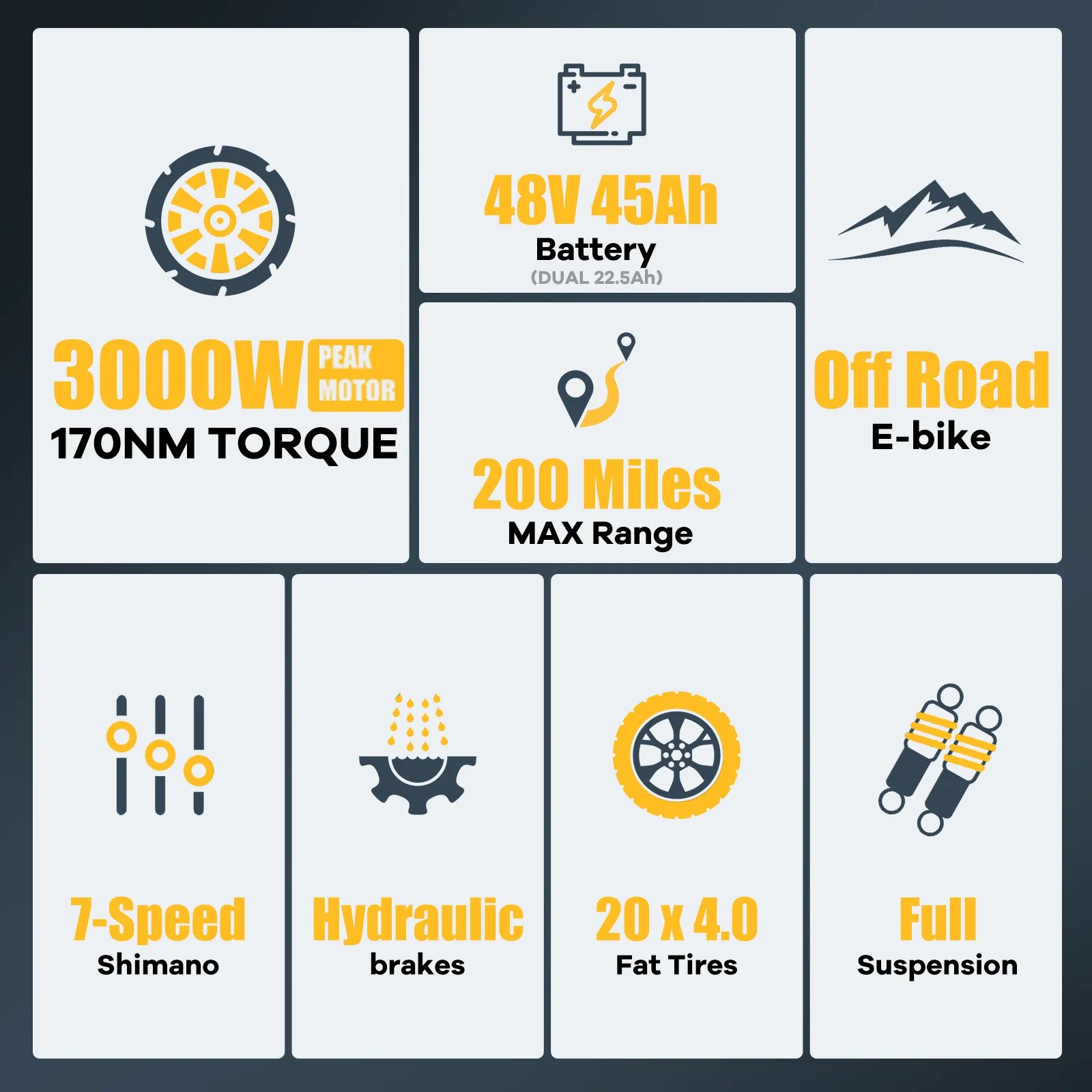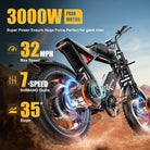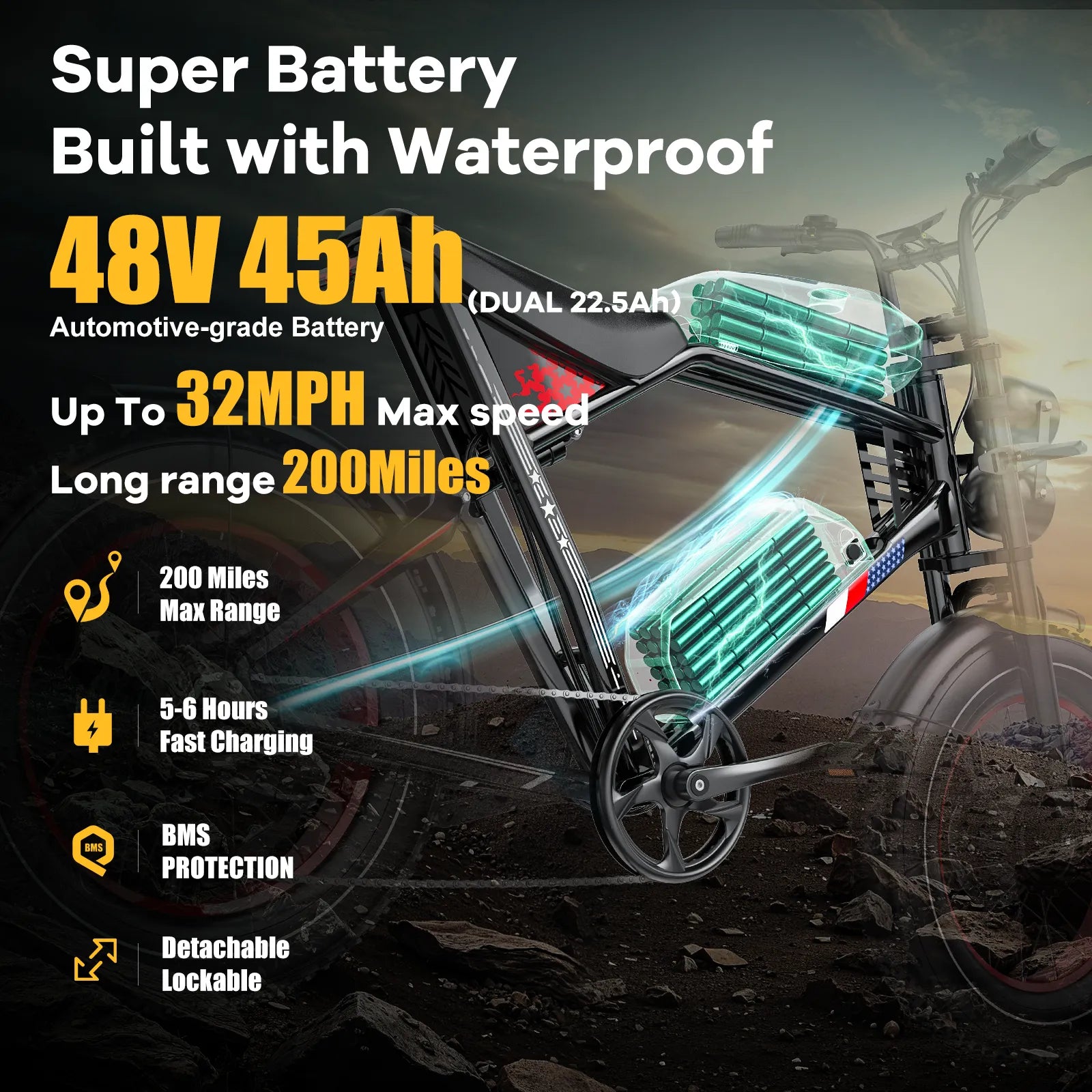 ES2 Ultra Electric Bike, Dual 45Ah Super Battery Ebike, Peak 3000W Dual Motor Ebikes, Up to 32MPH, 7-Speed 20"* 4.0 Fat Tire All Terrain Electric Bike for Adults