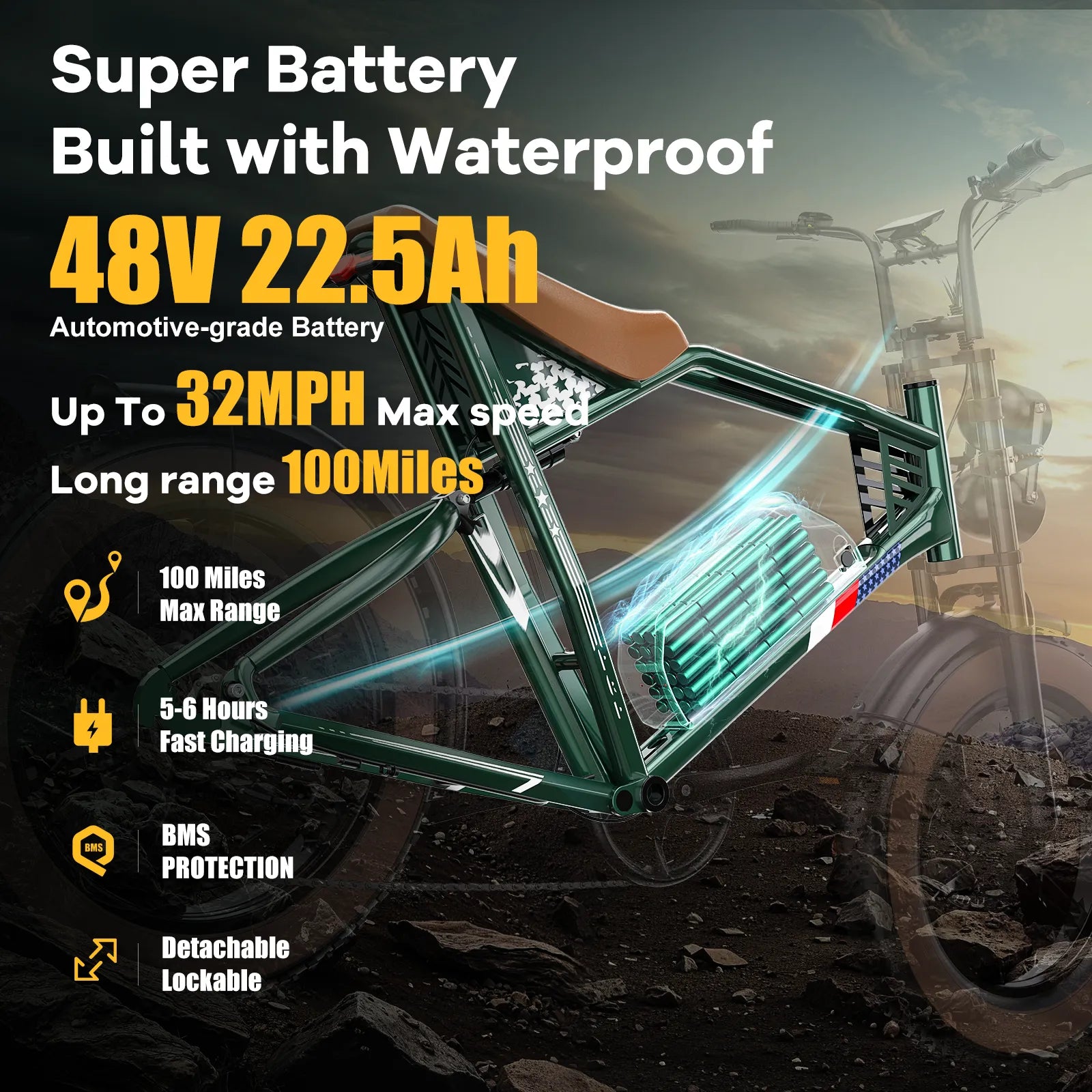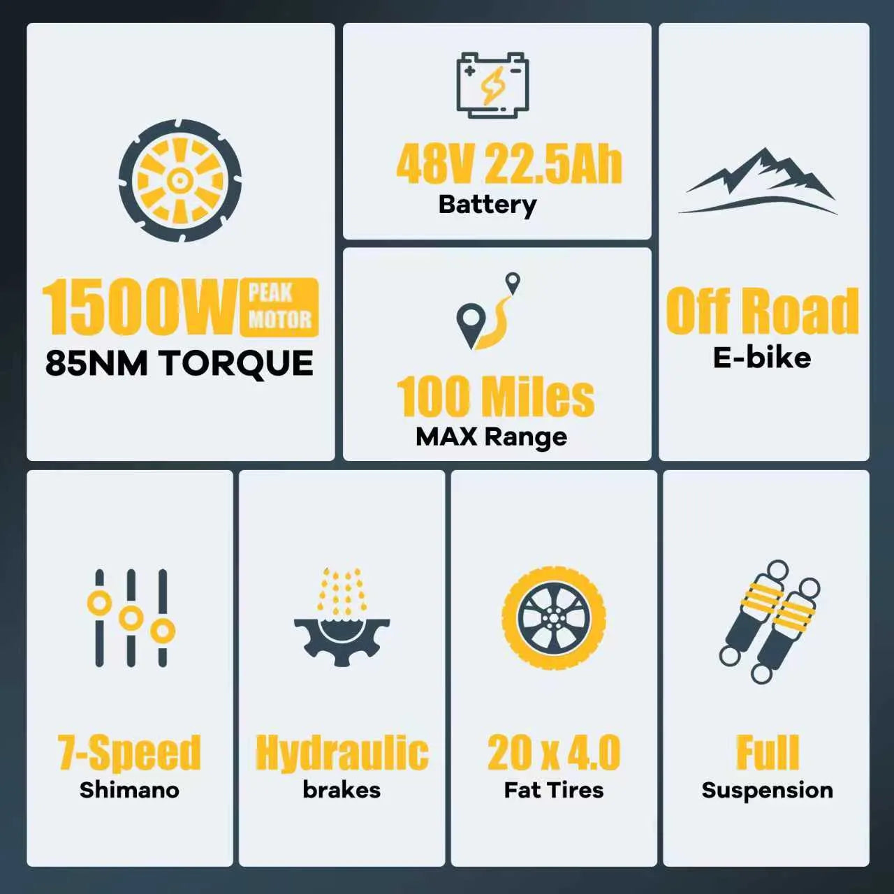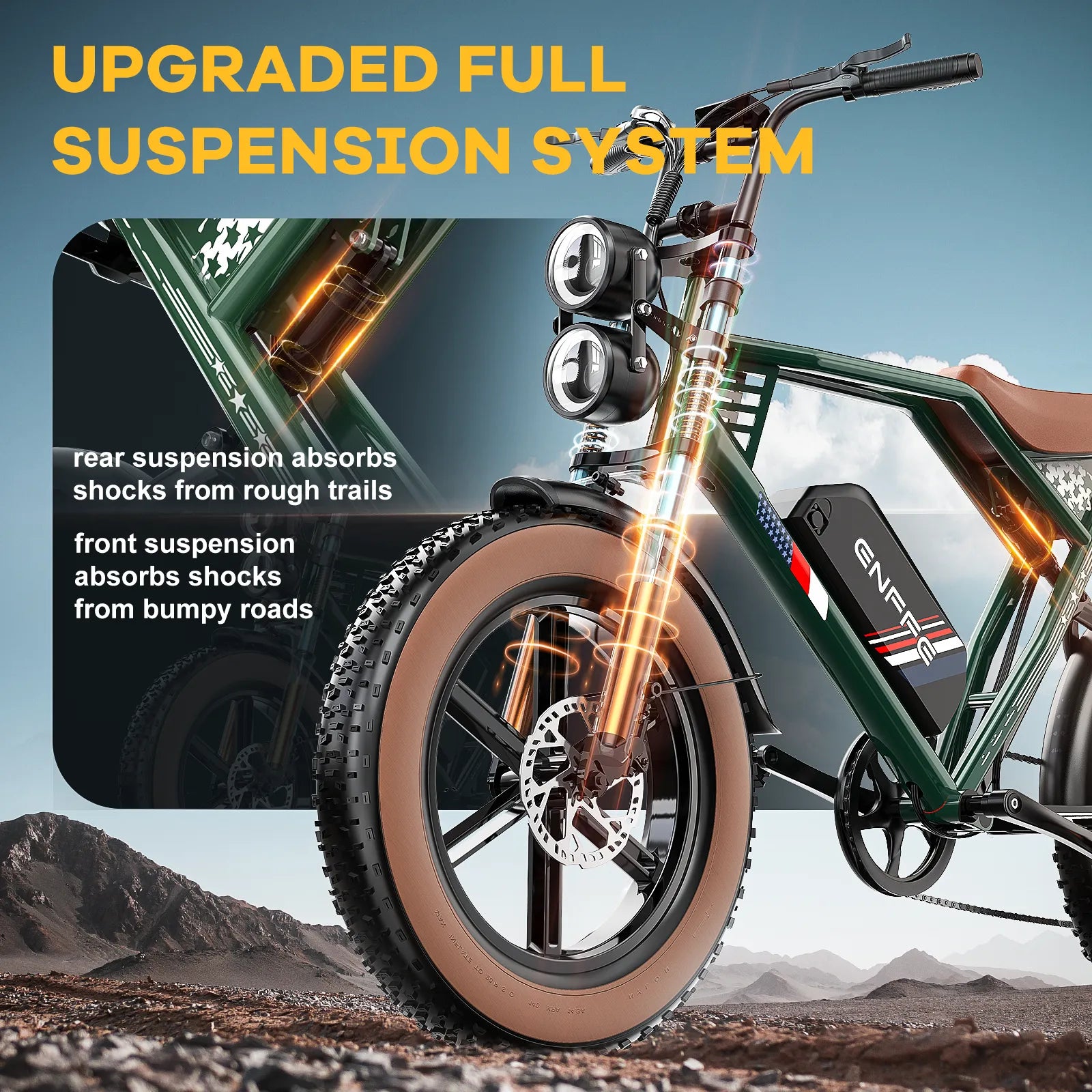 ES2 MAX Off Road Electric Bike, 22.5 Ah Super Battery Full Suspension Ebike, 85NM Torque Super Power Hydraulics Ebike, Up to 32MPH, 7-Speed 20" Fat Tire All Terrain Electric Bike